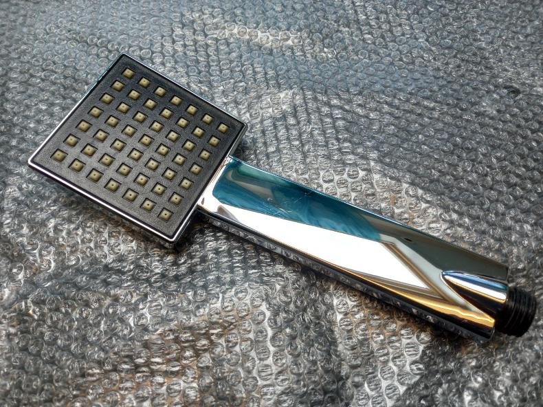square shower head, hand held shower, hand held shower head, shower handset, square hand shower, square shower handset, casselli shower head, chrome large shower, large shower head, large handheld shower, 100mm shower head, 4 inch shower head