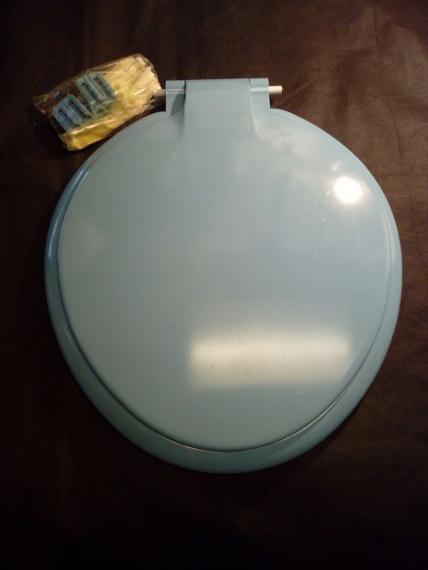 British made toilet seats. Standard shape, size and fit oval toilet seats in discontinued obsolete colours. Pacific Blue colour. Seat, cover lid, fixing hinges.
